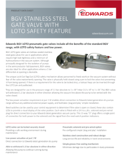 BGV LOTO gate valves are bellows sealed stainless steel gate valves for use in applications which require high leak tightness and a minimum of hydrocarbons in the vacuum system. Although principally designed for the isolation of pumps in the semiconductor fab basement, BGV valves are also ideal for other applications where a 1 bar differential at opening is desirable.